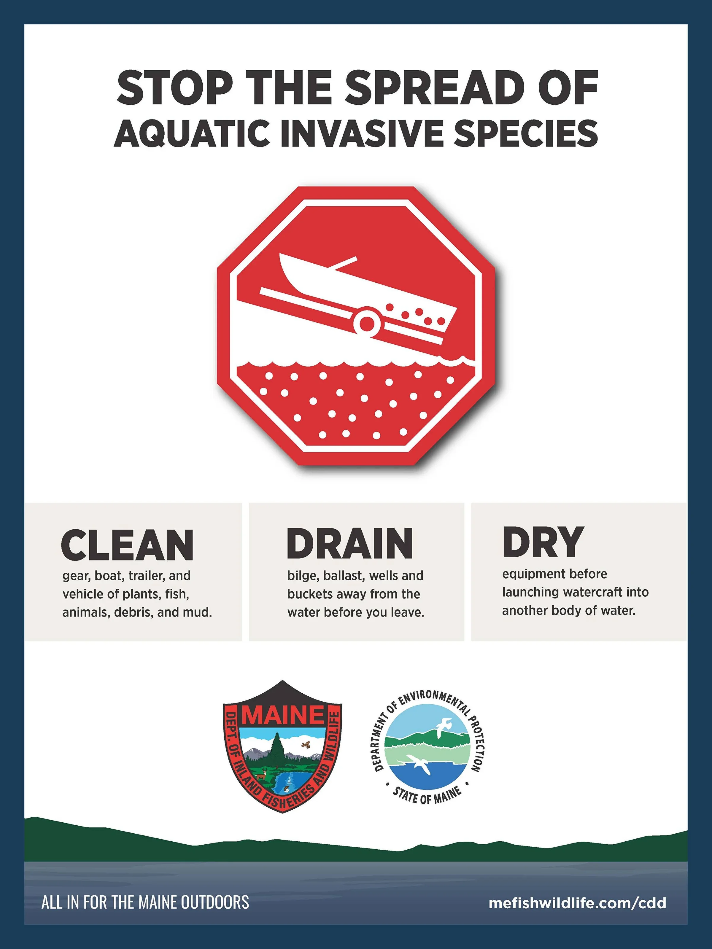 Inspect watercraft and trailers upon entering and leaving the lake – especially if you have visited another body of water. Even the smallest fragments introduced from another waterway can cause an infestation. And, in Maine -- it's the law!